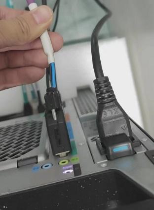 ③若Communication亮红灯,则需要检查射线开关是否已经打开,并检查扫描电脑背后的RS232接口光纤接线是否接触不良。若紫色光纤线松脱,需要重新插拔并插上。光纤为两芯(一蓝一黑),插入有方向要求,注意“上蓝下黑“。